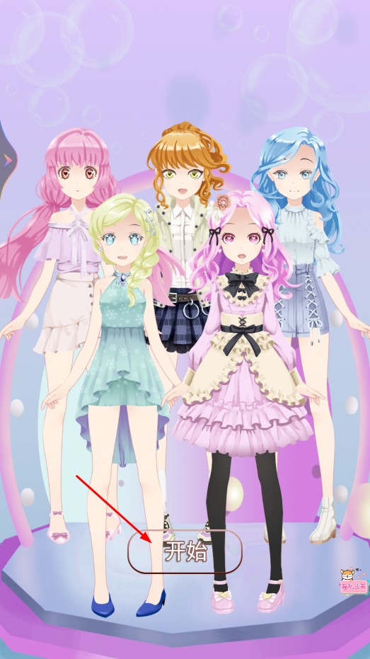 1、点击【开始】按钮,进入【梦幻魔法甜心】游戏,开启角色搭配之旅。
