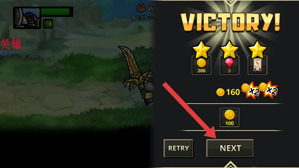 4、关卡胜利后,可获得大量金币、钻石等奖励(因无限资源机制,奖励可无限制积累),点击【NEXT】按钮继续挑战新关卡。