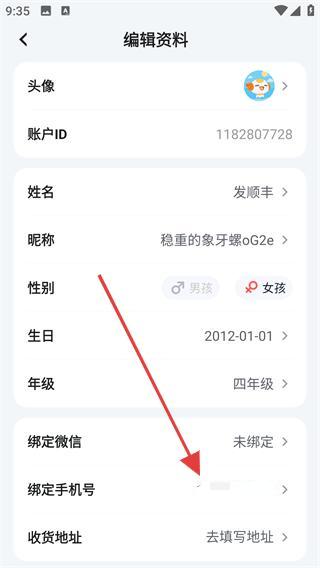 3、在编辑资料页选择【绑定手机号】选项,进入更换手机号的操作页面。