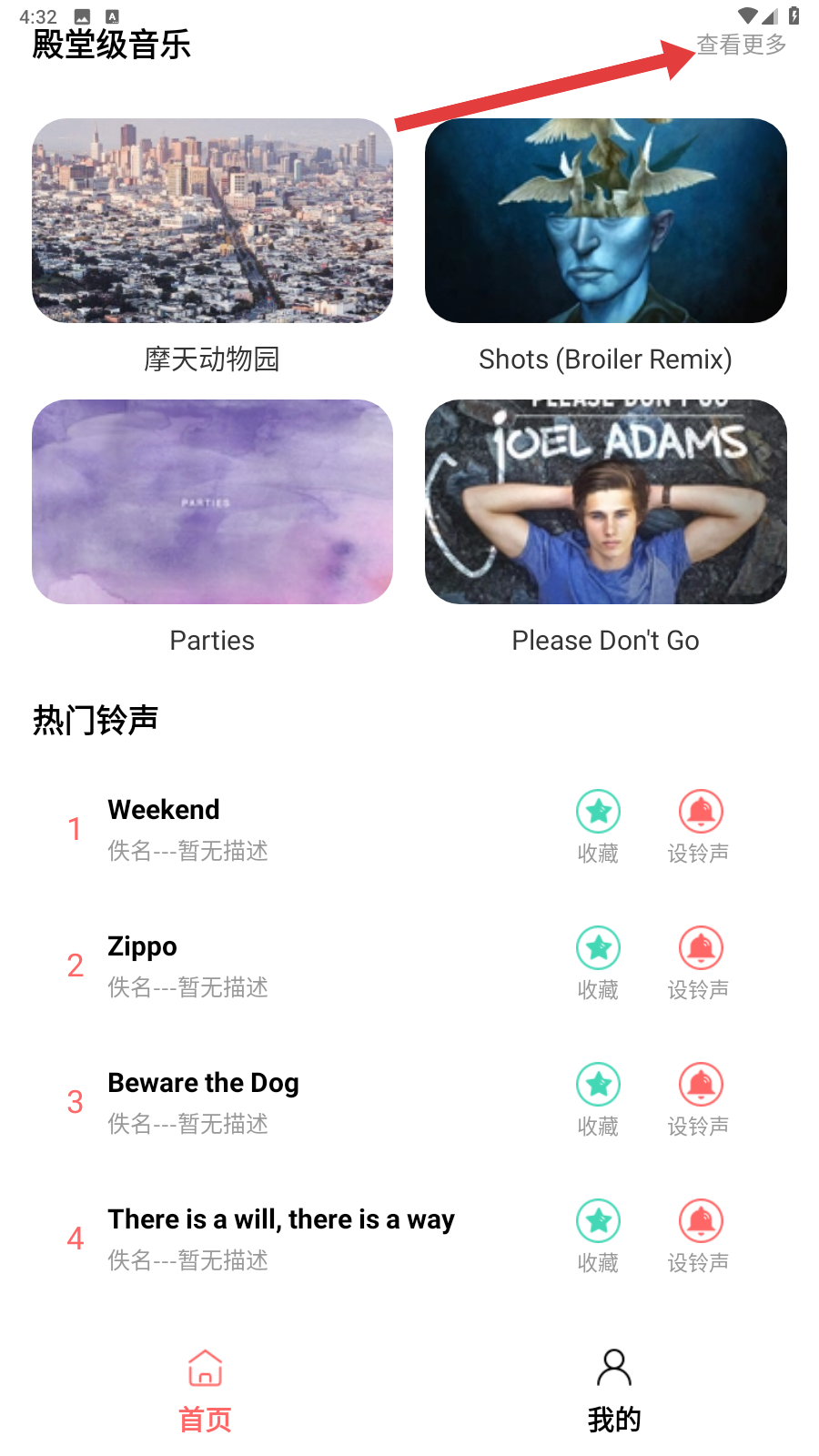 1、我们在软件主页,点击【殿堂级音乐】旁的【查看更多】,进入热门音乐列表啦。