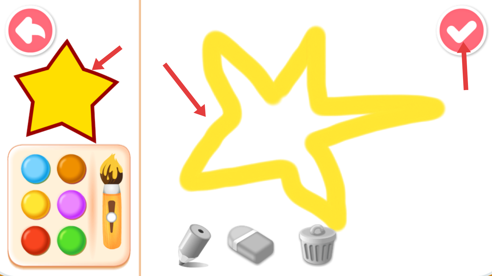 3、按照左侧黄色星星的样子,使用画笔在右侧画板上绘画,完成后点击右上角对勾。