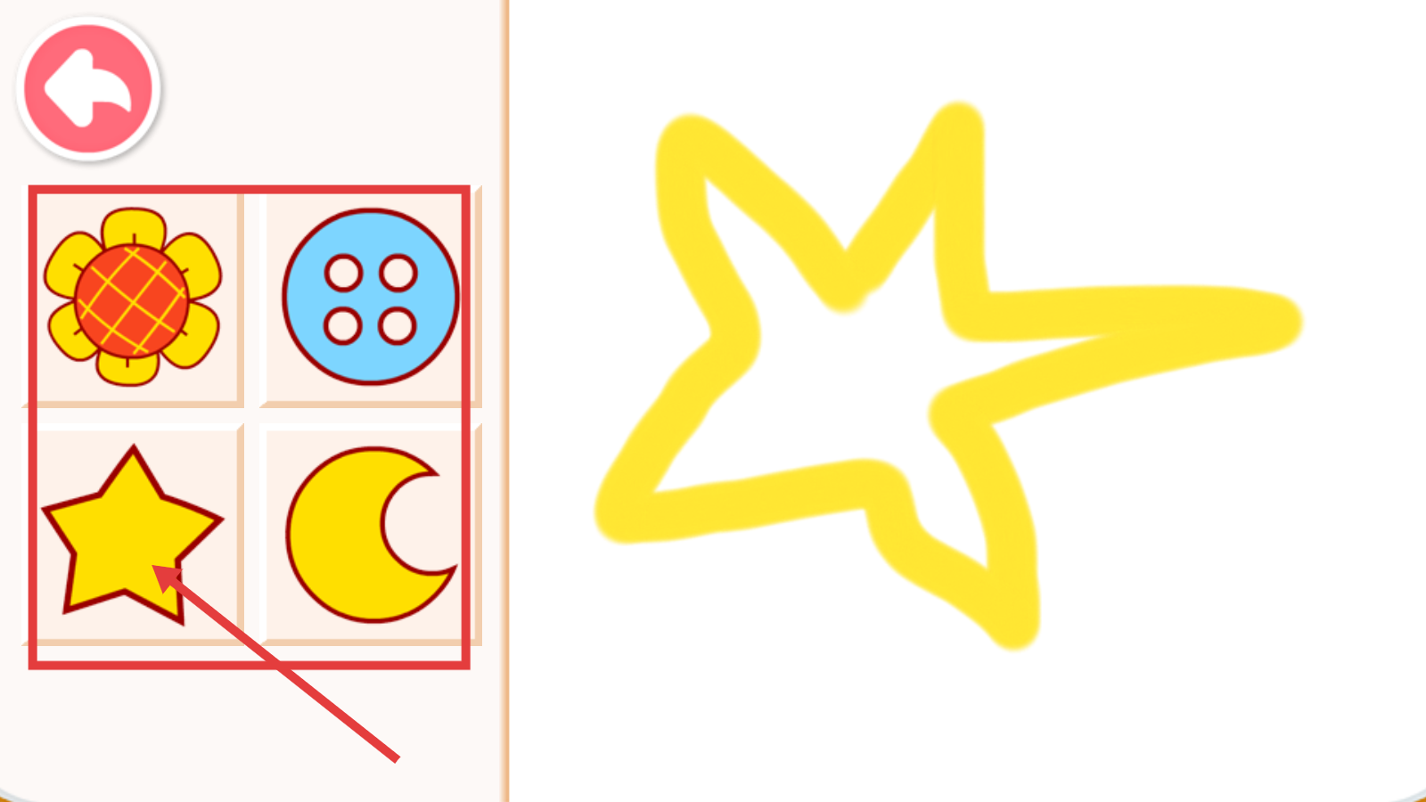 4、从左侧图案中选择箭头指向的黄色星星,作为绘画的参照图案。