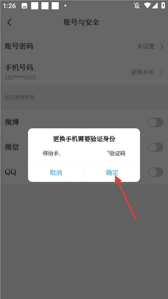 4、在弹出的“更换手机需要验证身份”提示框中点击【确定】,按后续提示完成手机号码更换操作。