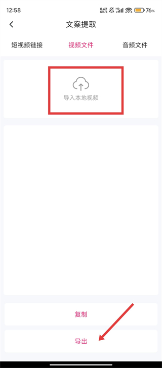 4、切换到【视频文件】标签,点【导入本地视频】,提取后点【导出】存文字啦。