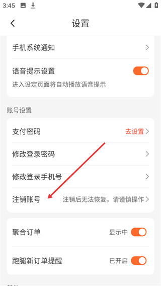 3、在设置页面里,找到【注销账号】选项并点击,触发注销相关提示弹窗。