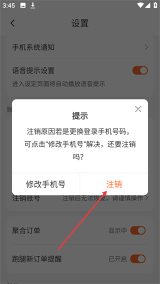 4、在提示弹窗中,确认要注销(若换号可点“修改手机号”),点击【注销】完成账号注销操作。