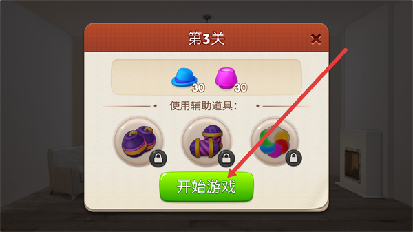1、在关卡选择界面点击开始游戏按钮,进入第3关消除场景。