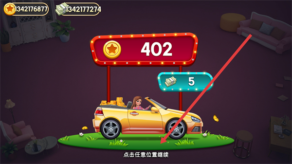 4、完成消除目标后,界面显示通关奖励,点击任意位置即可继续游戏。