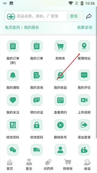 3、定位到【管理地址】功能入口,点击进入地址管理的操作页面。