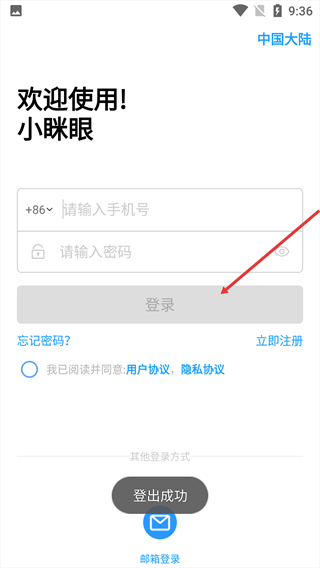 4、退出操作完成后,页面跳转至小眯眼的登录界面。