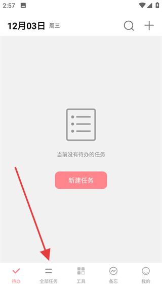 1、打开明天计划首页,点击底部“全部任务”进入任务页面。