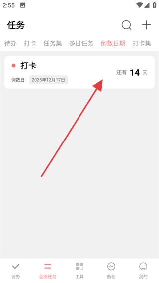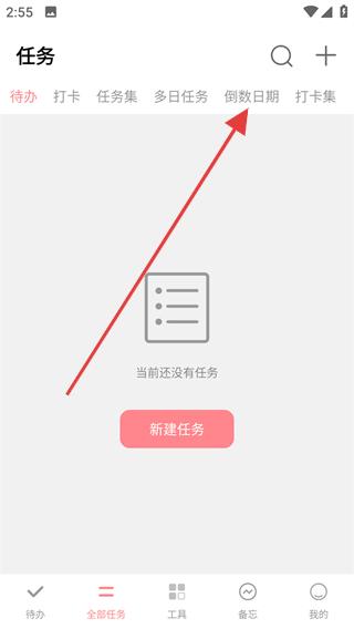 2、在任务页顶部切换到“倒数日期”标签页。
