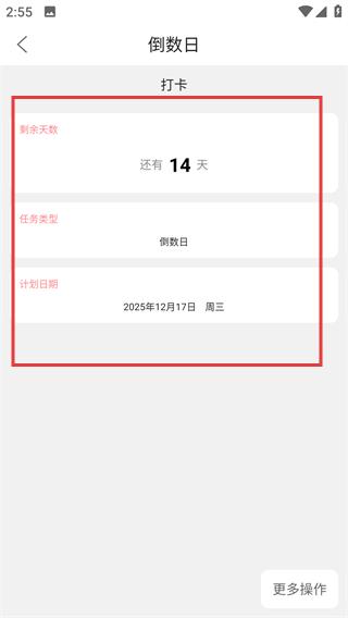 4、在详情页即可查看该任务的剩余天数、任务类型、计划日期等倒计时记录信息。