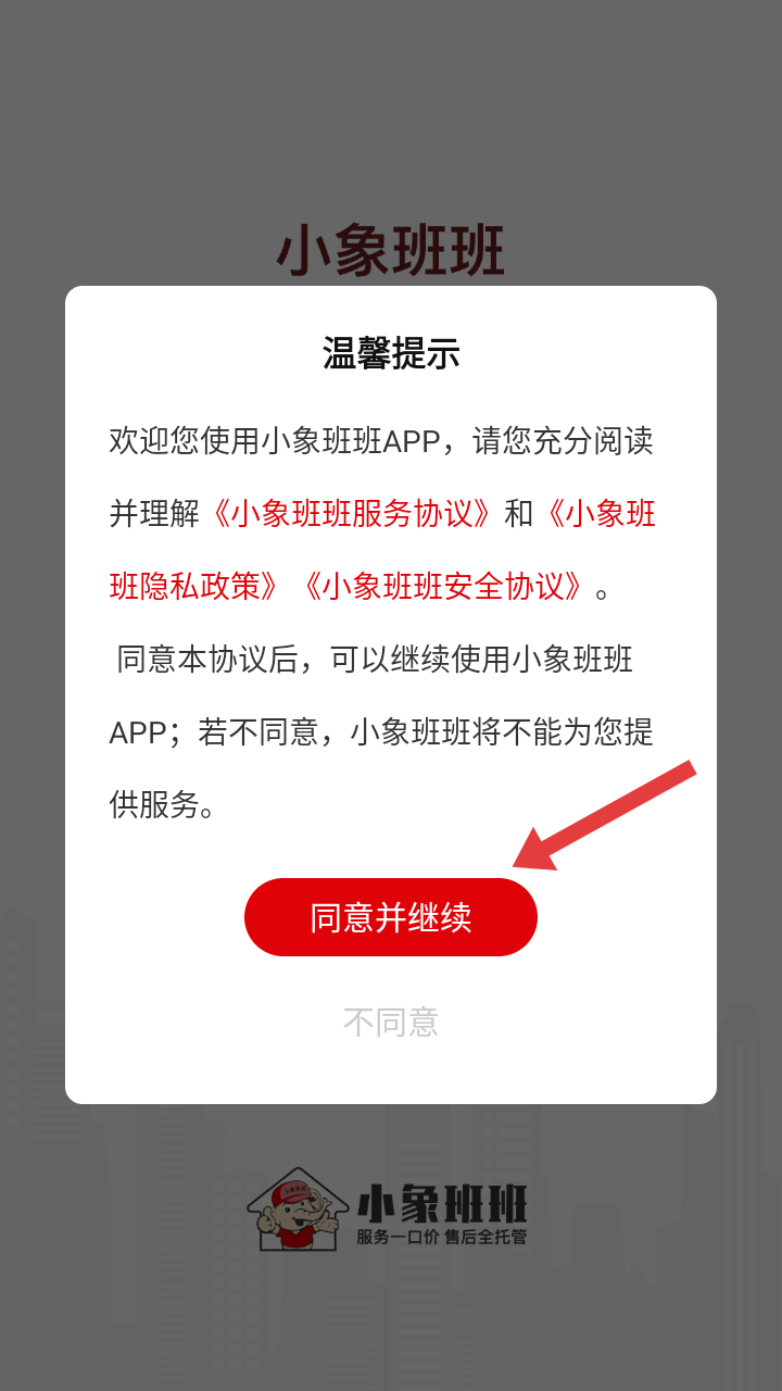1、用户打开软件后,点击【同意并继续】进入注册界面。