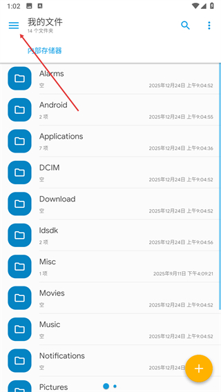 1、打开Solid Explorer的我的文件界面,点击左上角三条杠图标展开侧边栏菜单。