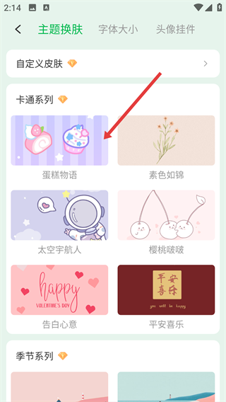 3、在主题换肤界面,选择目标主题。