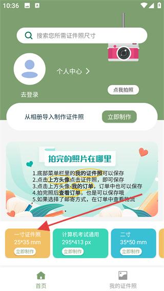 1、打开至美证件照,选择目标尺寸(如“一寸证件照”),进入拍摄界面。