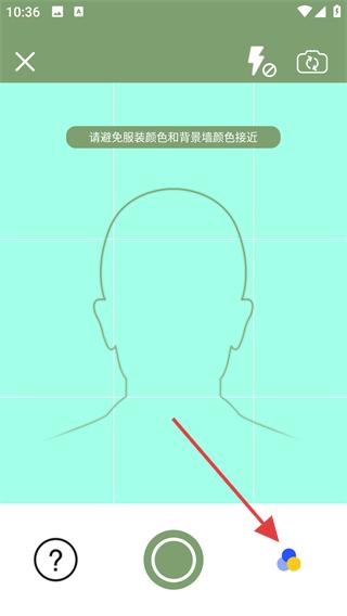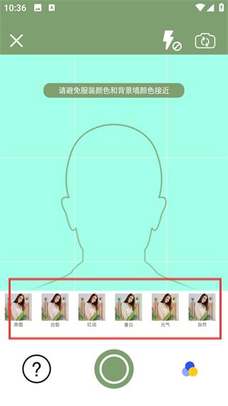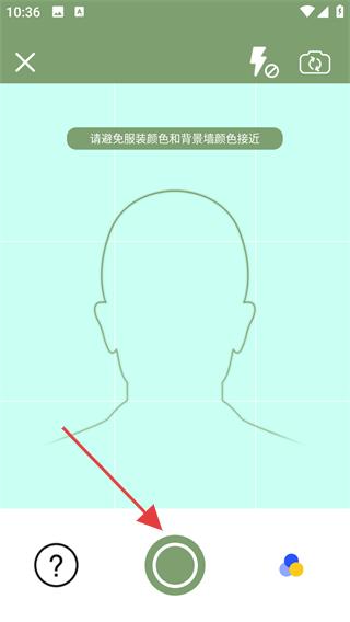 3、按照界面头像轮廓引导,调整姿势(头部、肩部对齐轮廓),避免服饰与背景色接近。