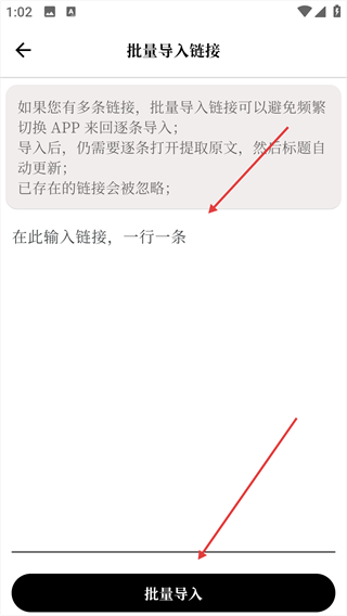 4、输入需要导入的链接,确认后点击【批量导入】按钮完成操作。