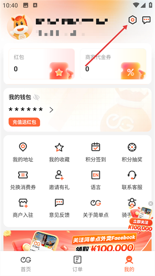 2、在【我的】页面,点击右上角的设置图标。