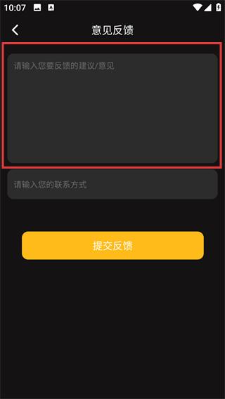 3、进入意见反馈页,在输入框中填写要反馈的建议或意见内容。可补充填写联系方式(选填),方便平台后续沟通。