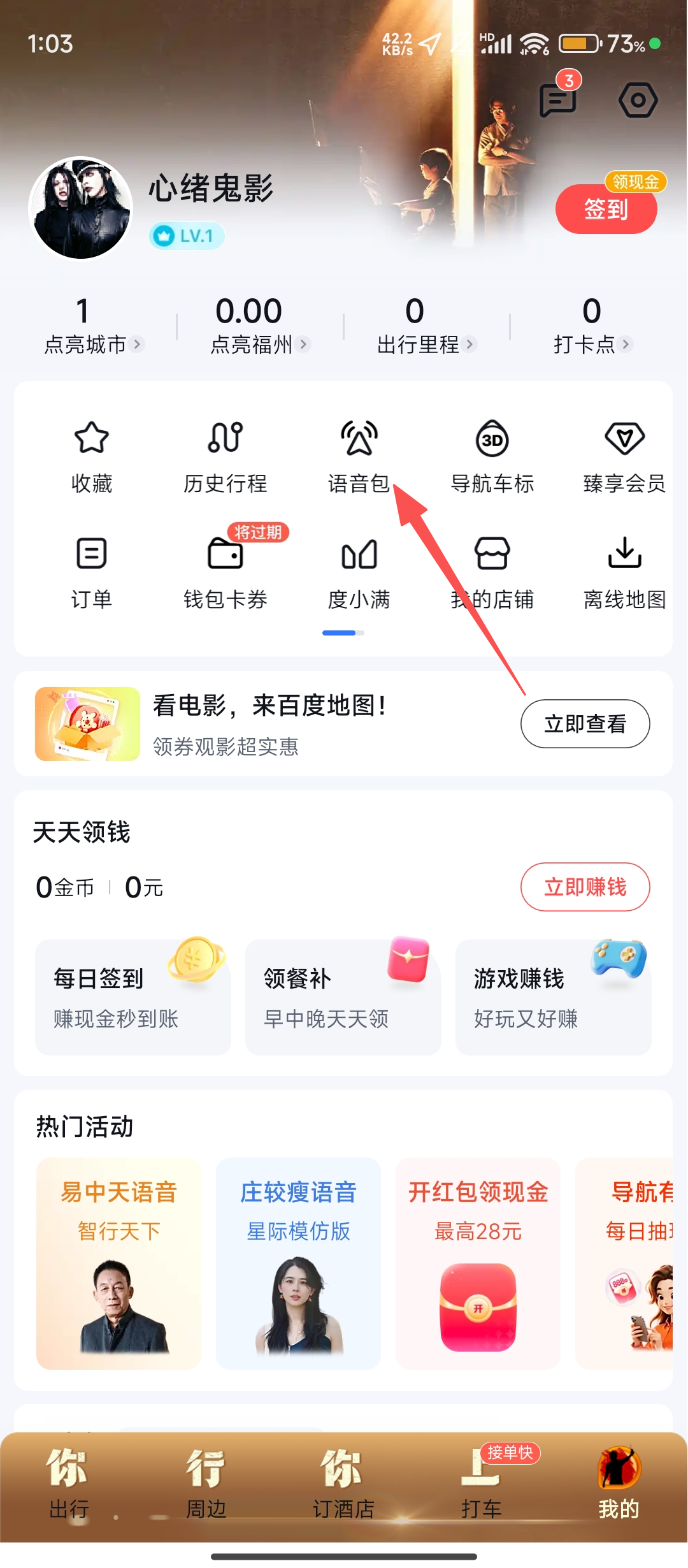 2、在个人界面中,找到【语音包】选项并点击,进入语音包选择页面啦。
