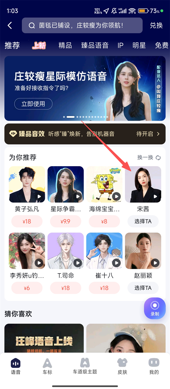3、在语音包列表里,挑选喜欢的语音,比如【宋茜】语音,点击进入详情页呢。