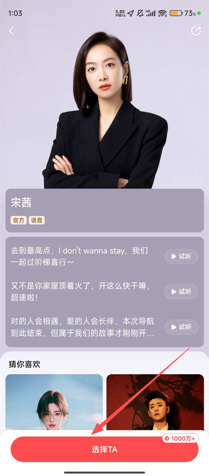 4、在语音详情页,点击底部【选择TA】,就能成功更换导航语音,让出行更有个性啦。