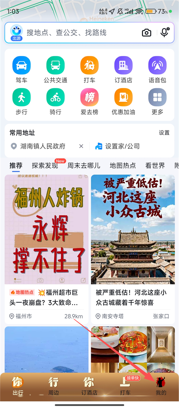 1、在百度地图主界面,点击右下角【我的】,准备更换语音包哦。