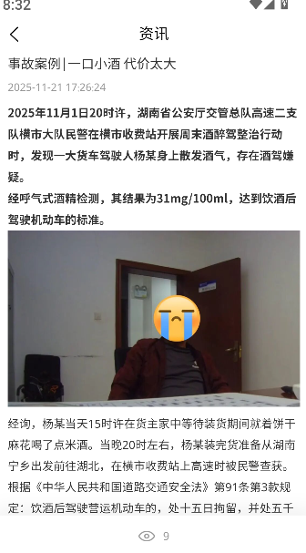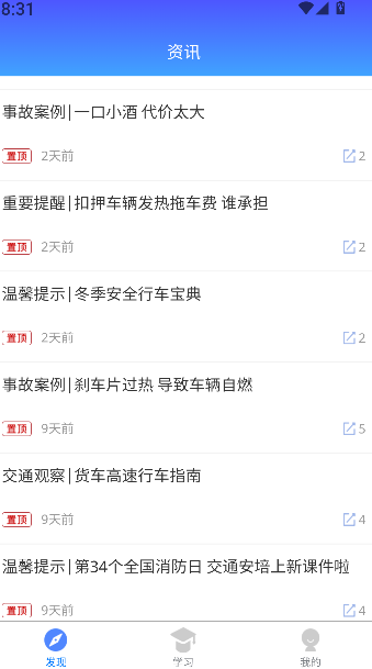 1、打开软件进入首页,浏览页面中展示的最新资讯内容,了解近期交通安全相关信息。
