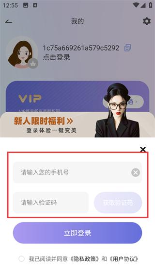 3、在登录弹窗中输入手机号、获取并填写验证码。