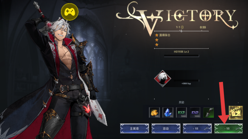 4、战斗胜利后,可选择领取奖励并点击绿色按钮进入下一关,继续挑战。