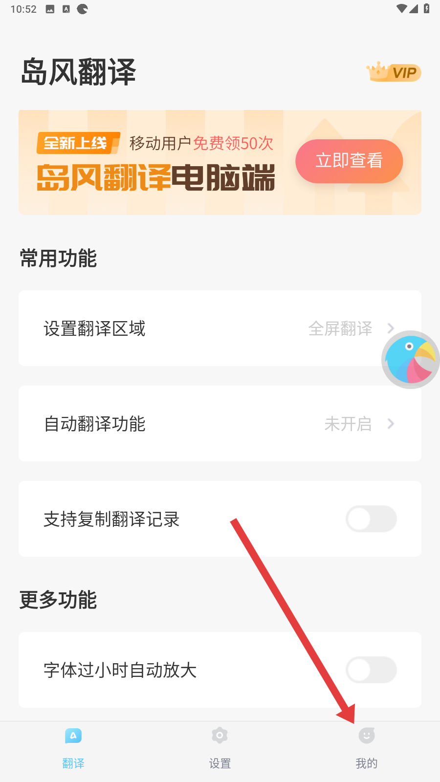 1、打开岛风游戏翻译App,点击底部【我的】按钮,开启邀请码绑定流程哦。