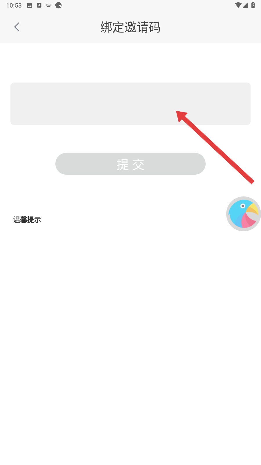 3、进入绑定邀请码页面后,在输入框中输入邀请码,确保输入准确才能继续下一步哦。