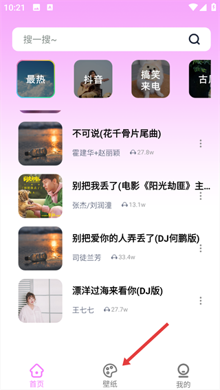 1、点击底部的【壁纸】按钮,切换至壁纸页面。
