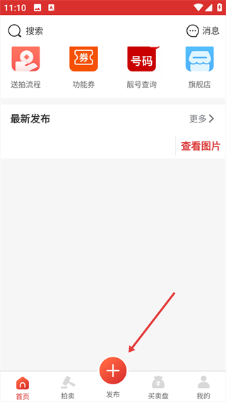 1、打开app,点击底部“发布”按钮,进入发布功能的操作页面。