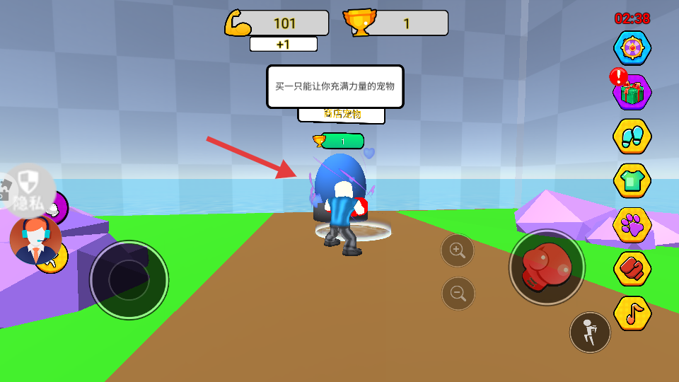4、完成打破墙任务后,根据提示前往【商店-宠物】区域,购买宠物增加自身力量。