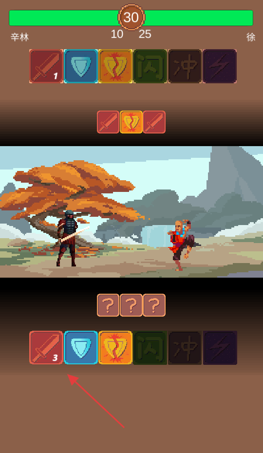 3、利用像素场景(树木、山水),配合角色技能,推进战斗。
