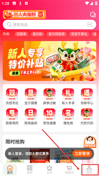 提供积分商城,用户可以将自己平时所赚取的积分用于兑换各种药品;