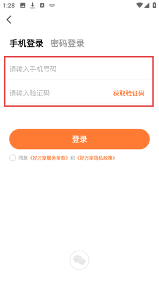 3、在【手机登录】页面,需依次填写【请输入手机号码】-【请输入验证码】,并勾选同意相关条款。