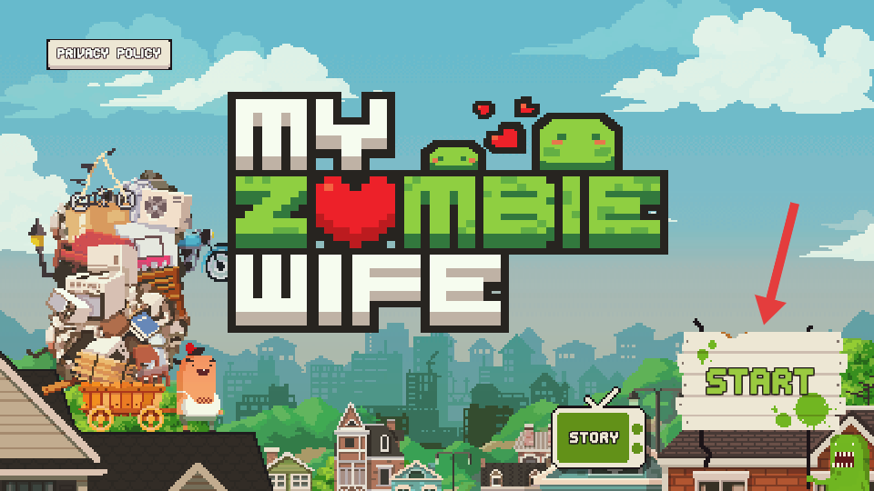 1、游戏初始为【My-Zombie-Wife】标题界面,点击右侧带红色箭头的【START】按钮即可进入游戏。