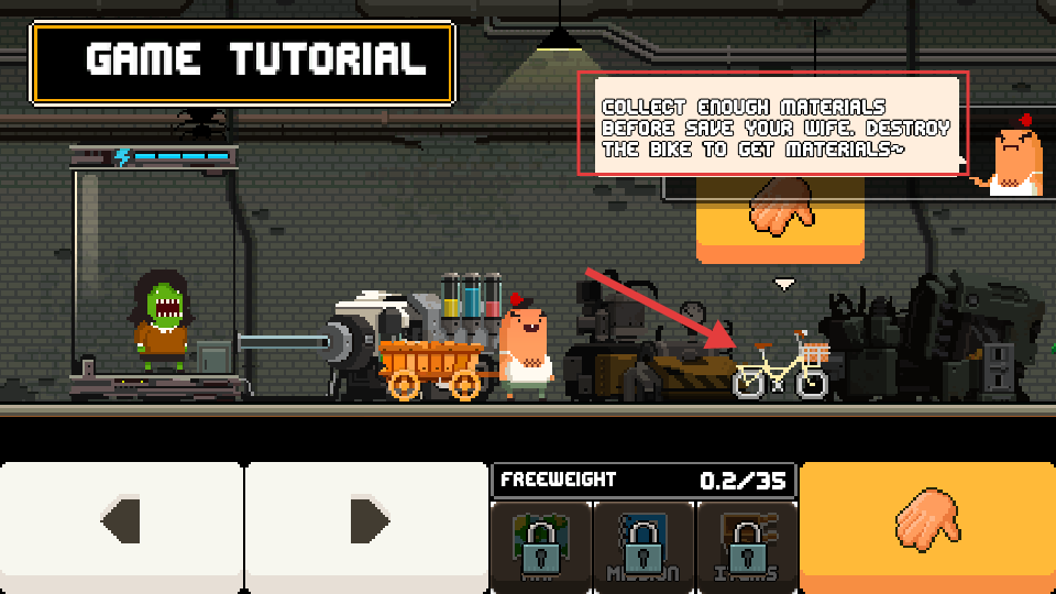 2、教程阶段需按提示摧毁【Bike】获取材料,界面【FREE-WEIGHT】显示进度0.2/35。