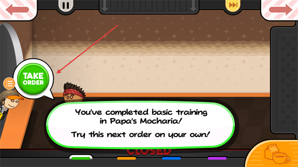 2、在咖啡店经营中,需及时接收顾客订单点击【TAKEORDER】,根据订单要求制作咖啡,提升顾客满意度。