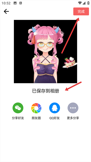 4、图片保存后,界面显示“已保存到相册”,点击右上角【完成】按钮结束本次操作。