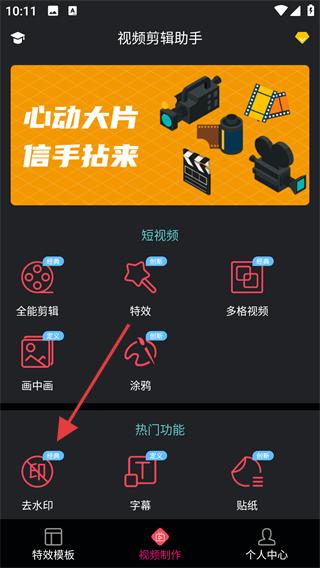 3、提供多种网红热门视频特效模板;提供视频压缩、去水印等功能;支持高清视频剪辑导出。