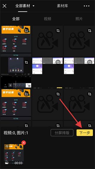 2、在素材页选中带水印的图片/视频,点击【下一步】,进入去水印编辑界面。