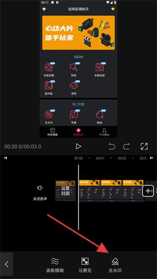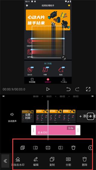 3、在编辑页点击【去水印】选项,调出水印处理的操作工具。
