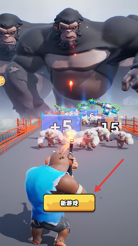 1、点击界面下方的【新游戏】按钮开始游戏,前方有【+5】【+6】【15】等增益标识,需应对来袭的小怪物。