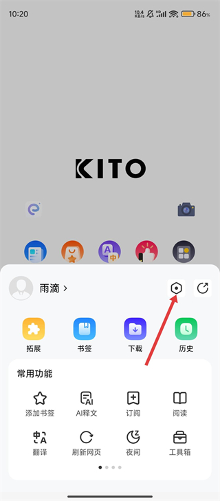 1、打开可拓浏览器App,在个人界面找到【设置】图标点击。