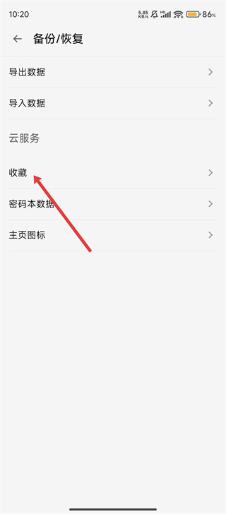 3、在备份或恢复页面,选择【收藏】选项,就能进入云备份的具体设置环节啦。